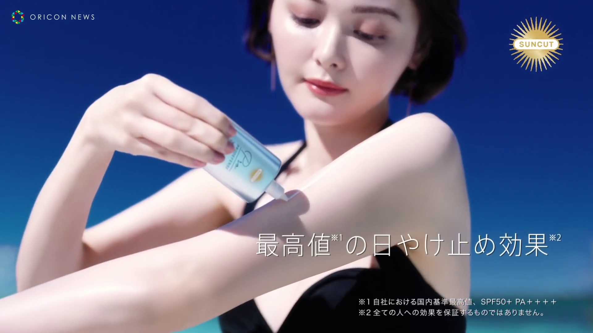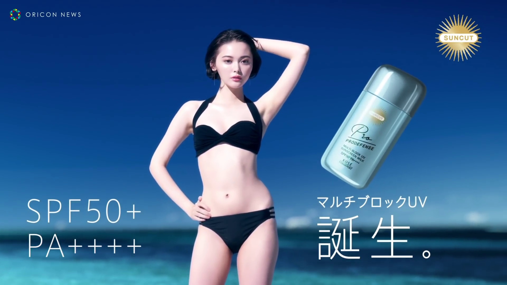 玉城ティナ、水着に9.5センチのヒール!透き通った美肌を惜しみなく披露 サンカット プロディフェンス 新CM「 輝くビーチへ」篇